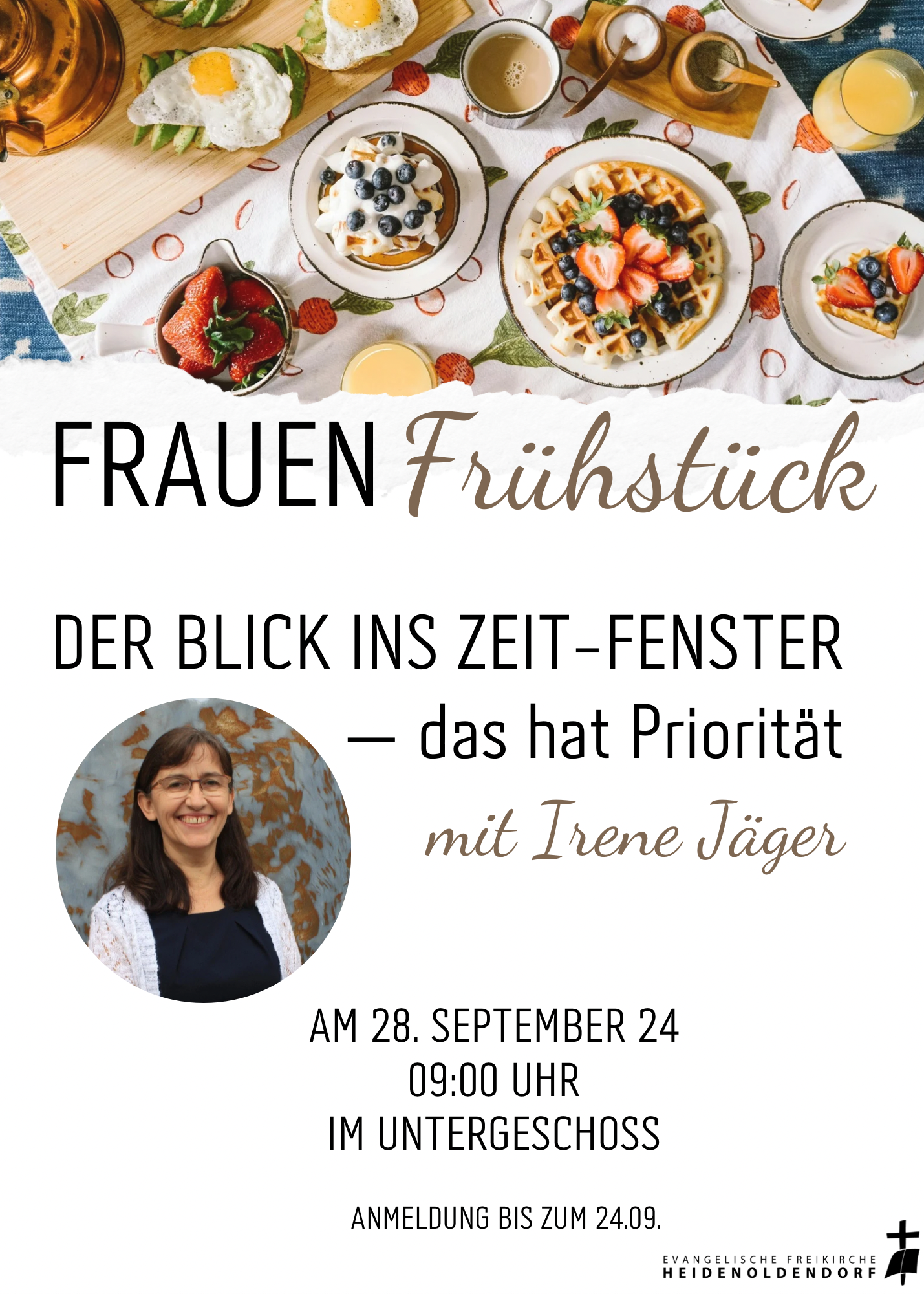 nach unserer Sommerpause freuen wir uns euch zu unserem FRAUENfrühstück am 28.09.2024 um 09:00 Uhr in das Untergeschoss einzuladen.