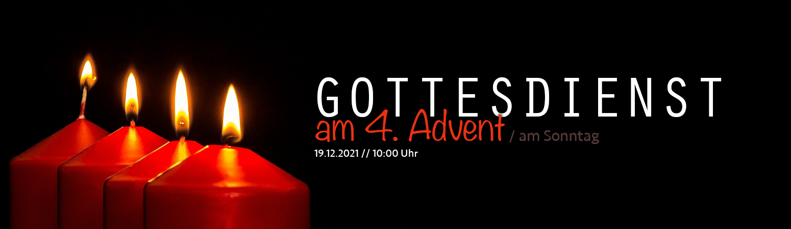 Wir möchten Sie herzlich zu unserem Sonntags-Gottesdienst am 4. Advent einladen! Am 19.12.2021 um 10:00 Uhr möchten wir euch mit in den letzten Sonntag vor Weihnachten nehmen - in die Adventszeit, in das Warten auf Jesus!