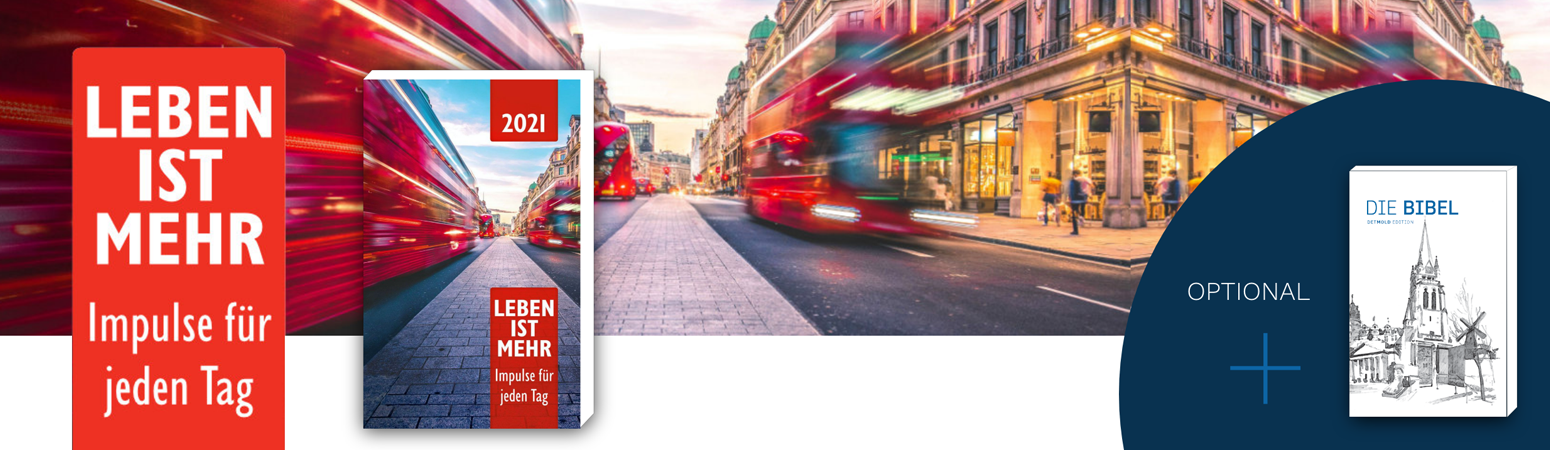 Wir freuen uns sehr, Ihnen den Buchkalender LEBEN IST MEHR 2021 und, falls gewünscht, auch die Bibel nach der Übersetzung Martin Luthers (2009) mit Detmold-Cover schenken zu dürfen.
