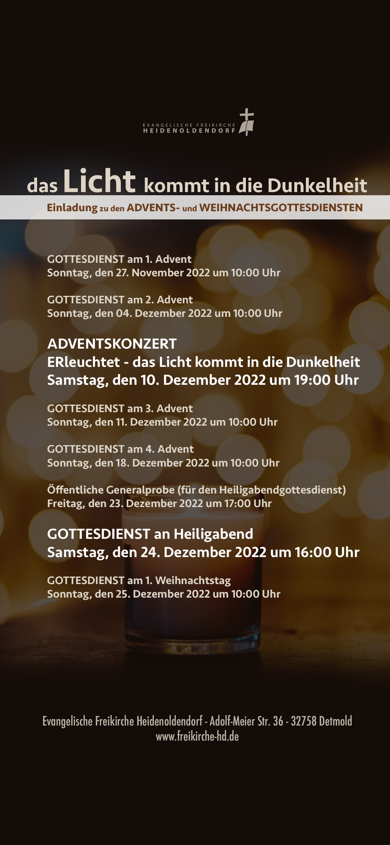 Einladung zu den ADVENTS- und WEIHNACHTSGOTTESDIENSTEN: